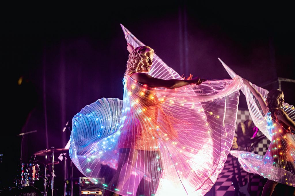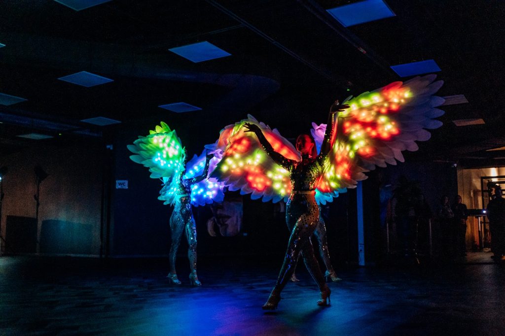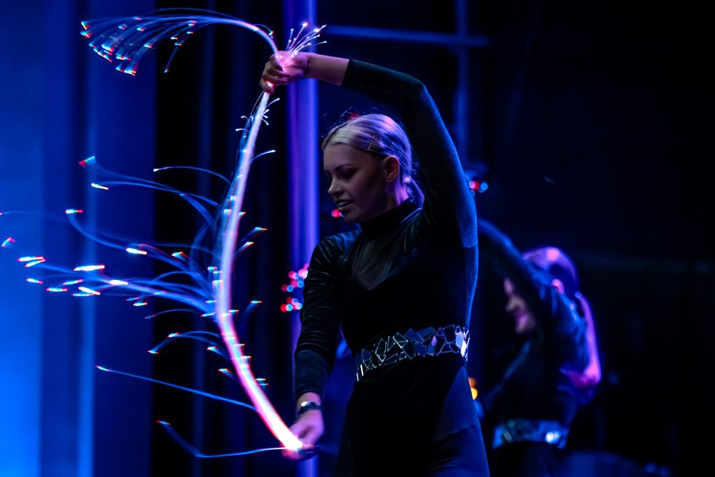 Dejā apvienoti horeogrāfija, krāšņi un īpaši tērpi, kas papildināti ar LED elementiem – balti spārni, riņķi, krāsaini spārni, pātagas, lielie Angel wings – mūsu galvenajiem deju instrumentiem.